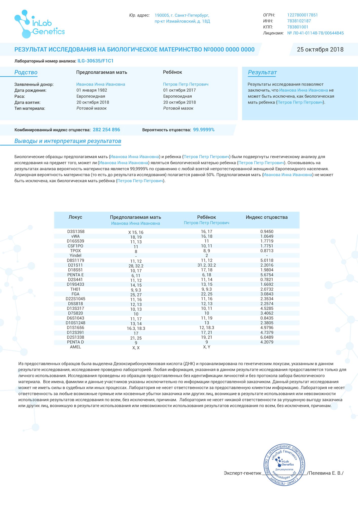 8(800) 550-42-94В каких случаях проводят ДНК-анализ на установление материнства